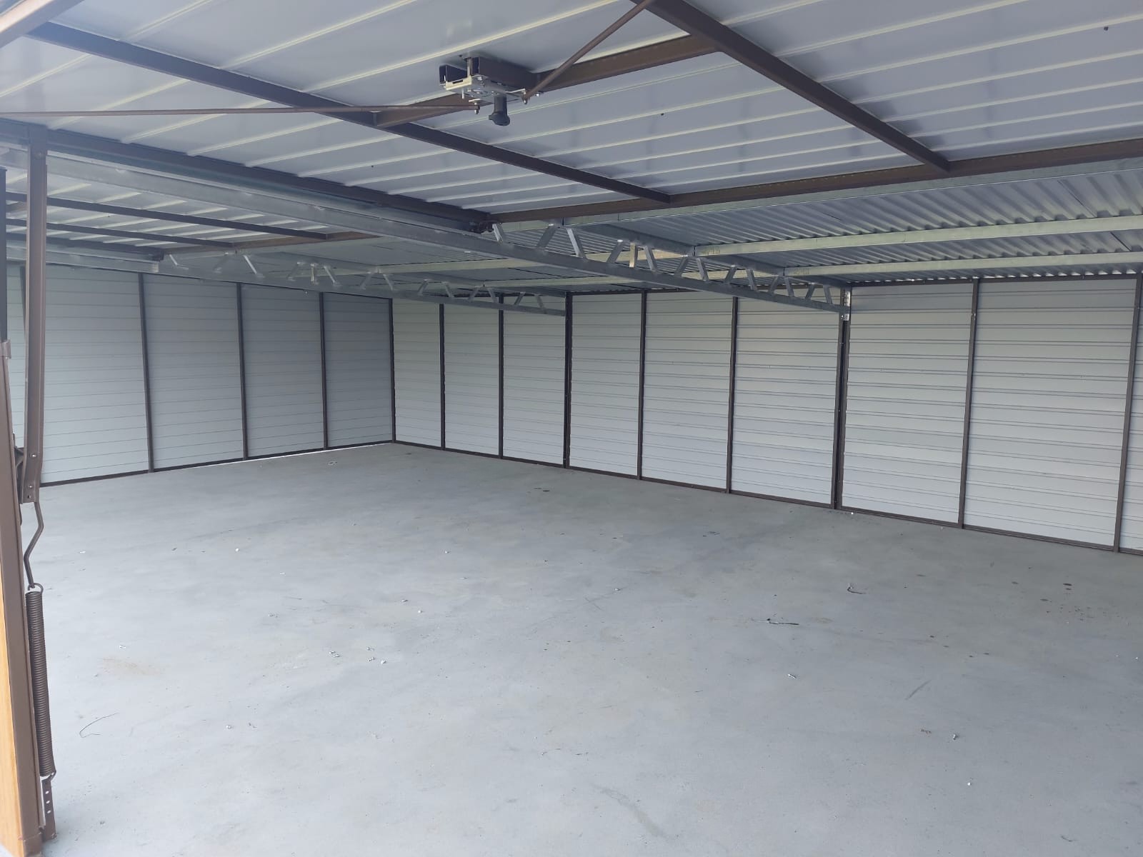 - konstrukcja w garażu jest malowana farbą podkładową na brązowo, zabezpieczenie antykorozyjne konstrukcji w zakresie klienta