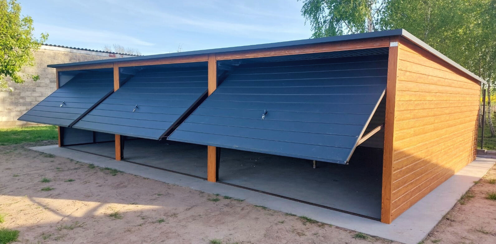 – kolor ścian garażu drewnopodobny / złoty dąb